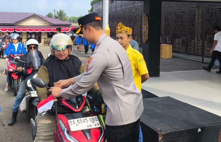 sekata.id, TANJUNG – Polres Tabalong bersama seluruh jajaran membagikan bendera merah putih bagi pengguna jalan yang melintas di Mapolres setempat, Kamis (07/09/2025).