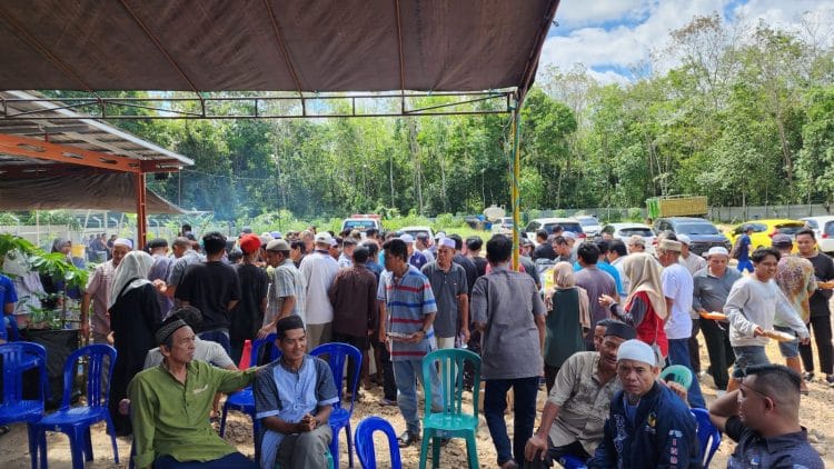 Penyembelihan hewan kurban ini dilakukan di Workshop Baru PT Harapan Kita Bersama (HBK) di Jalan H Obar Subari, Tanjung Selatan, Kecamatan Murung Pudak, Tabalong, Minggu (08/06/2025).